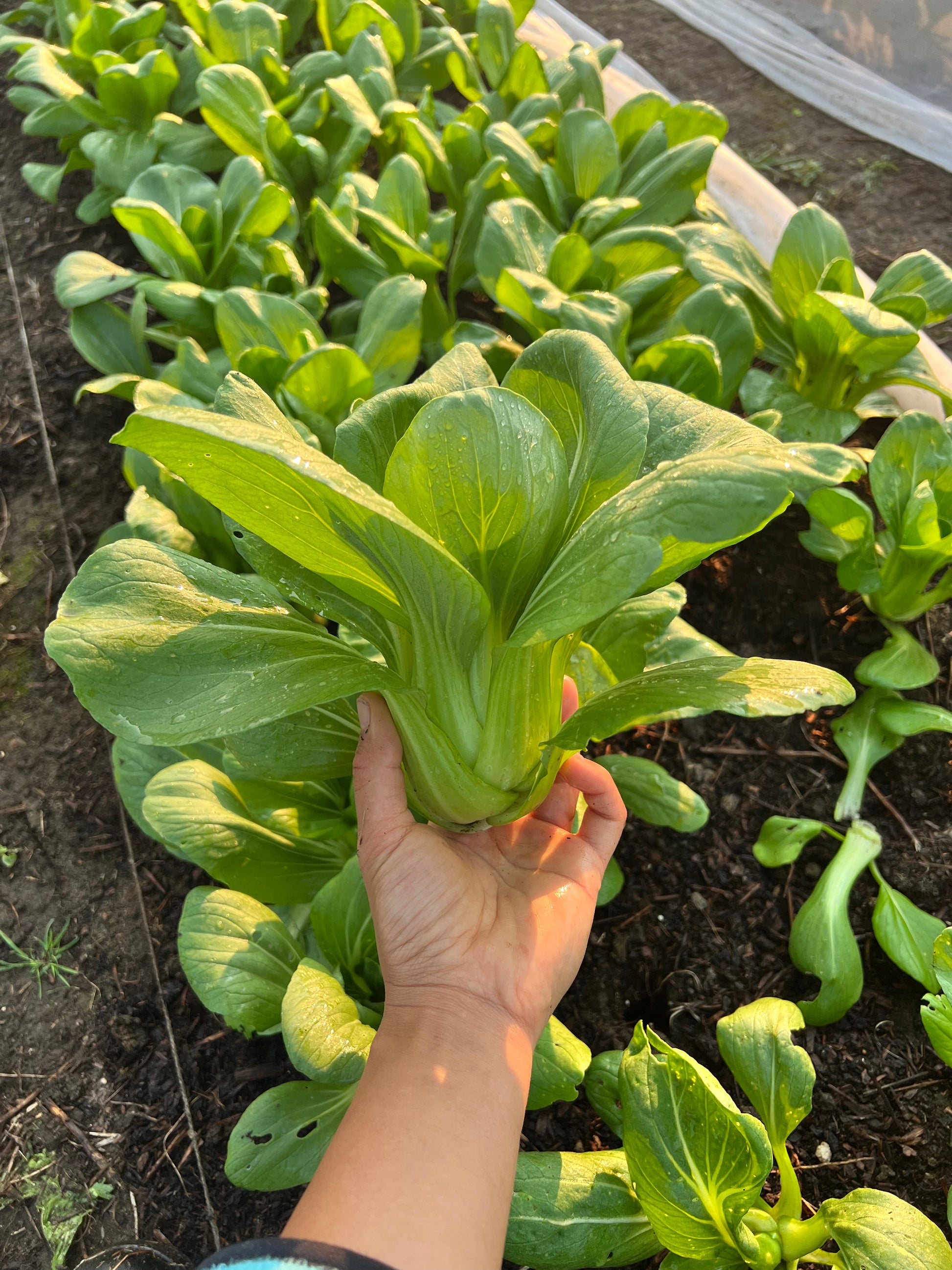 Frost hardy veggies like bok choy, gai lan, shungiku, lettuce, cilantro etc can be planted as soon as you receive your seedlings in May. In fact they thrive in cooler temperature.
